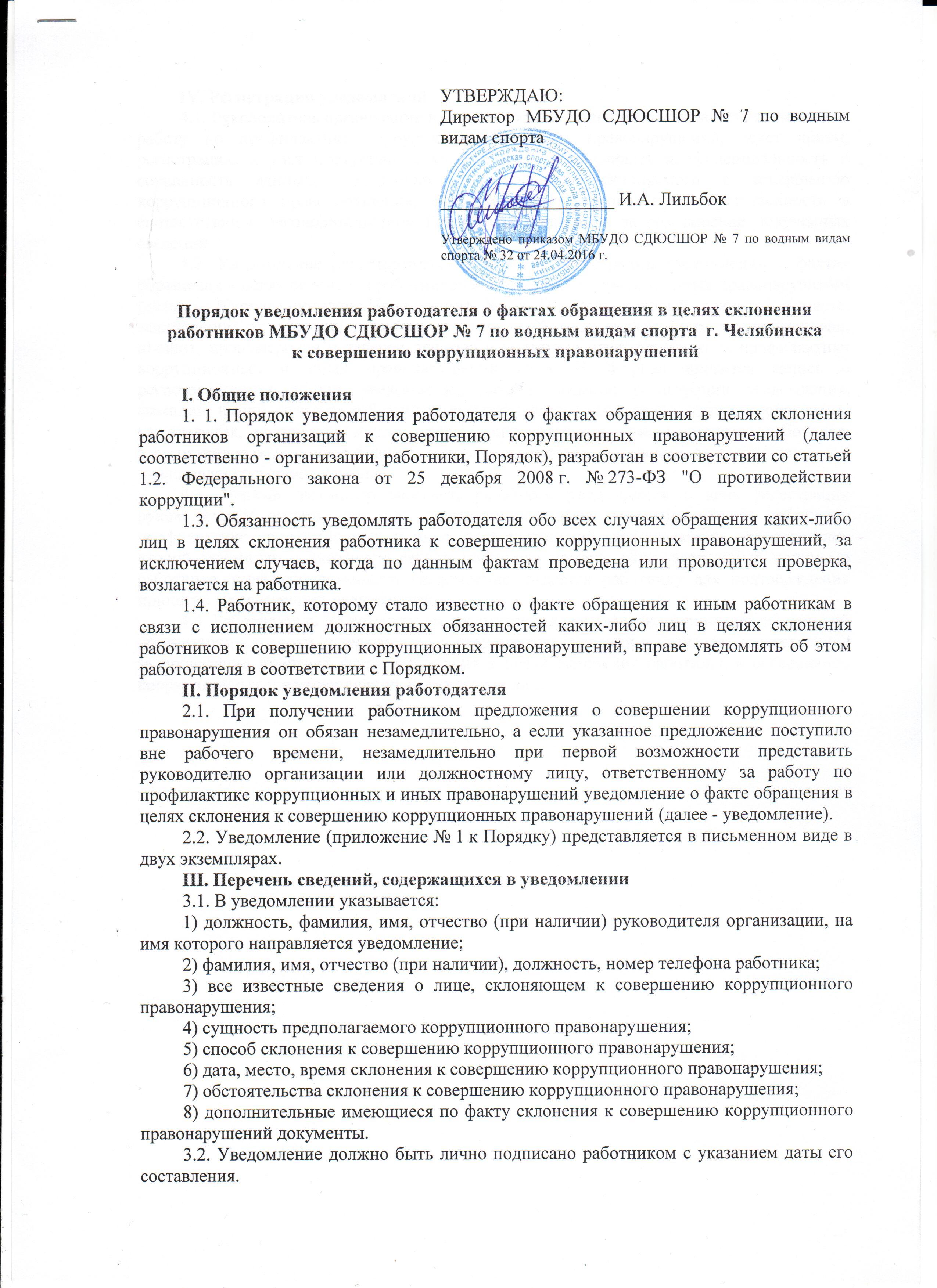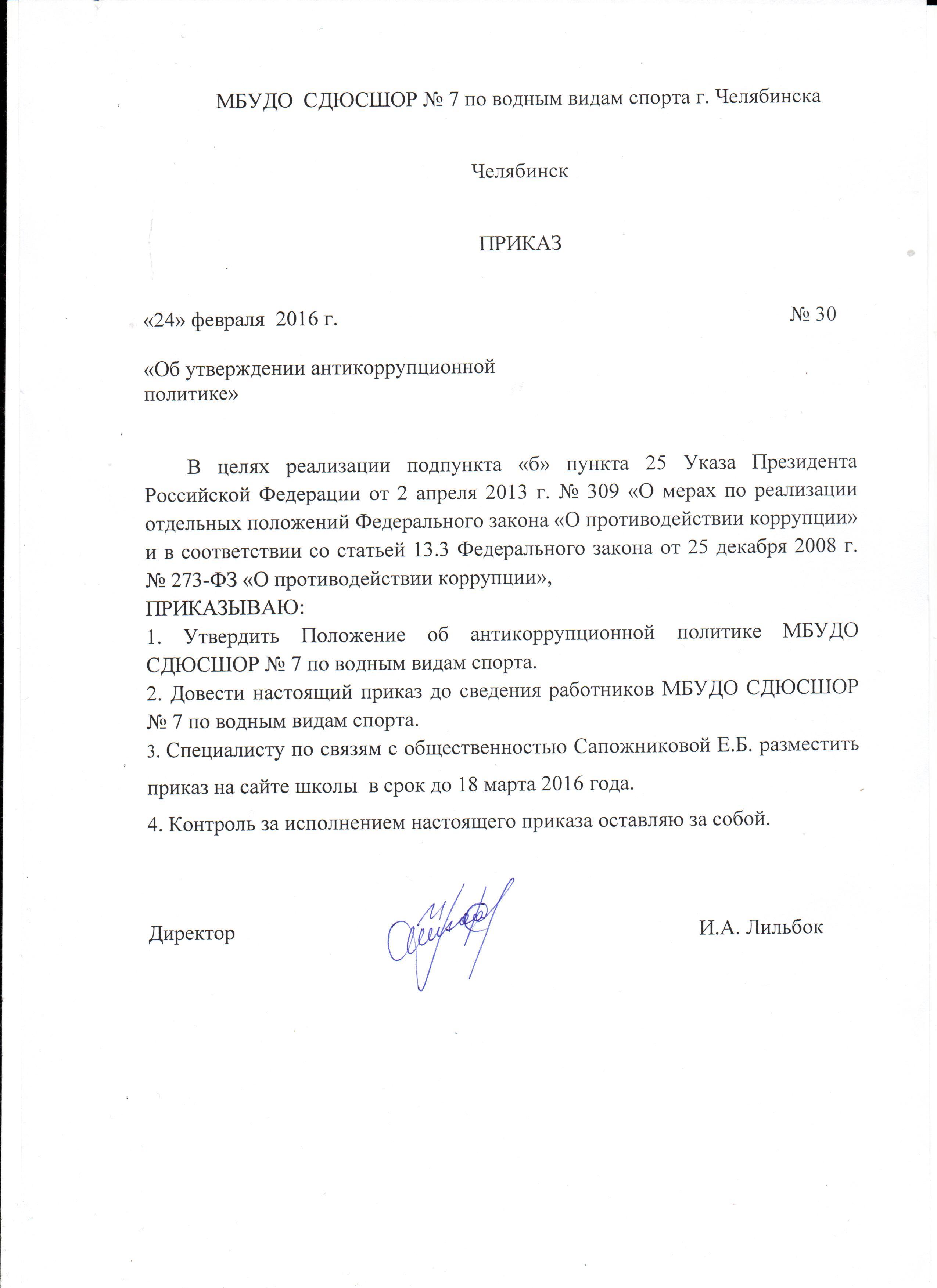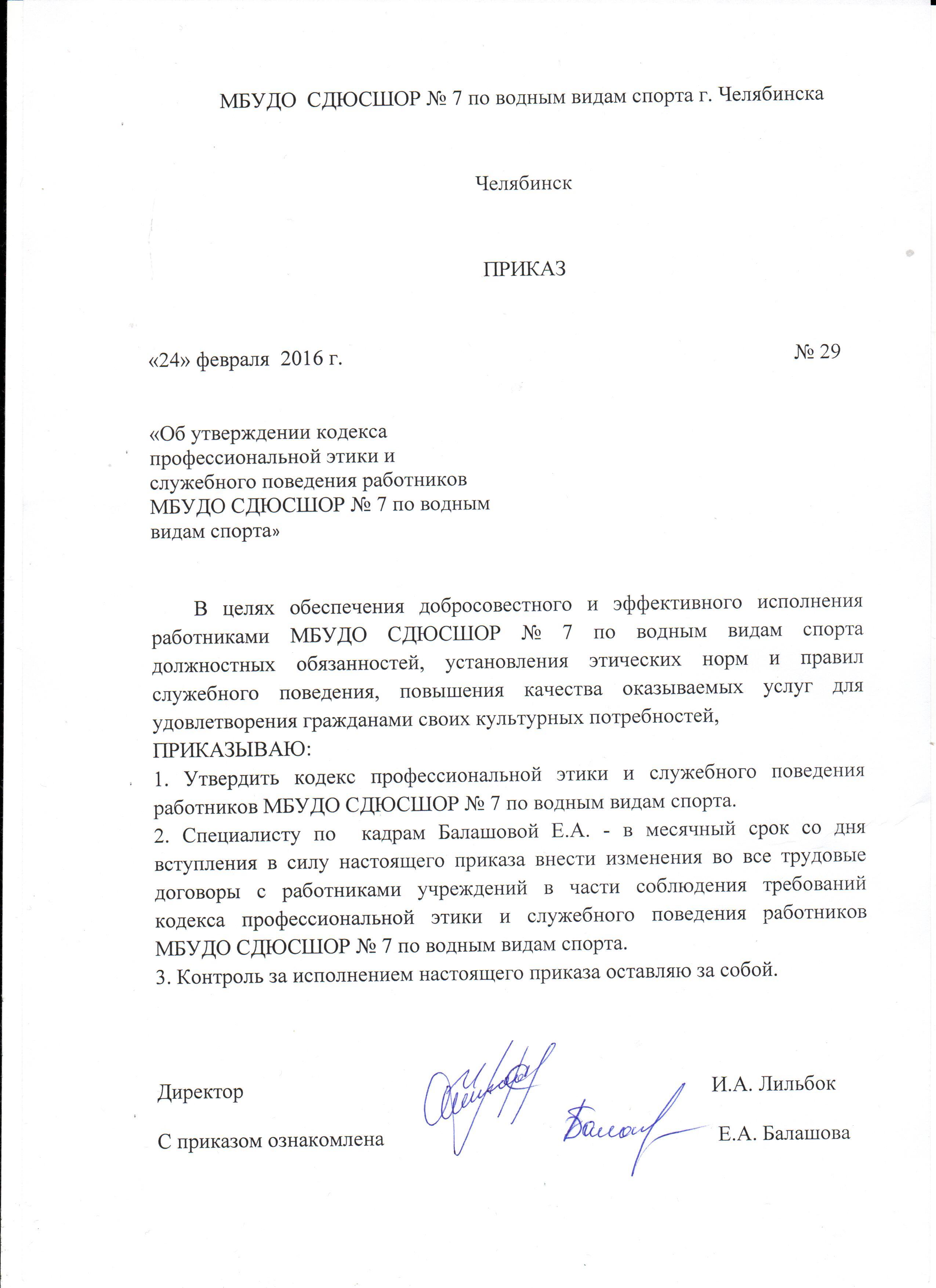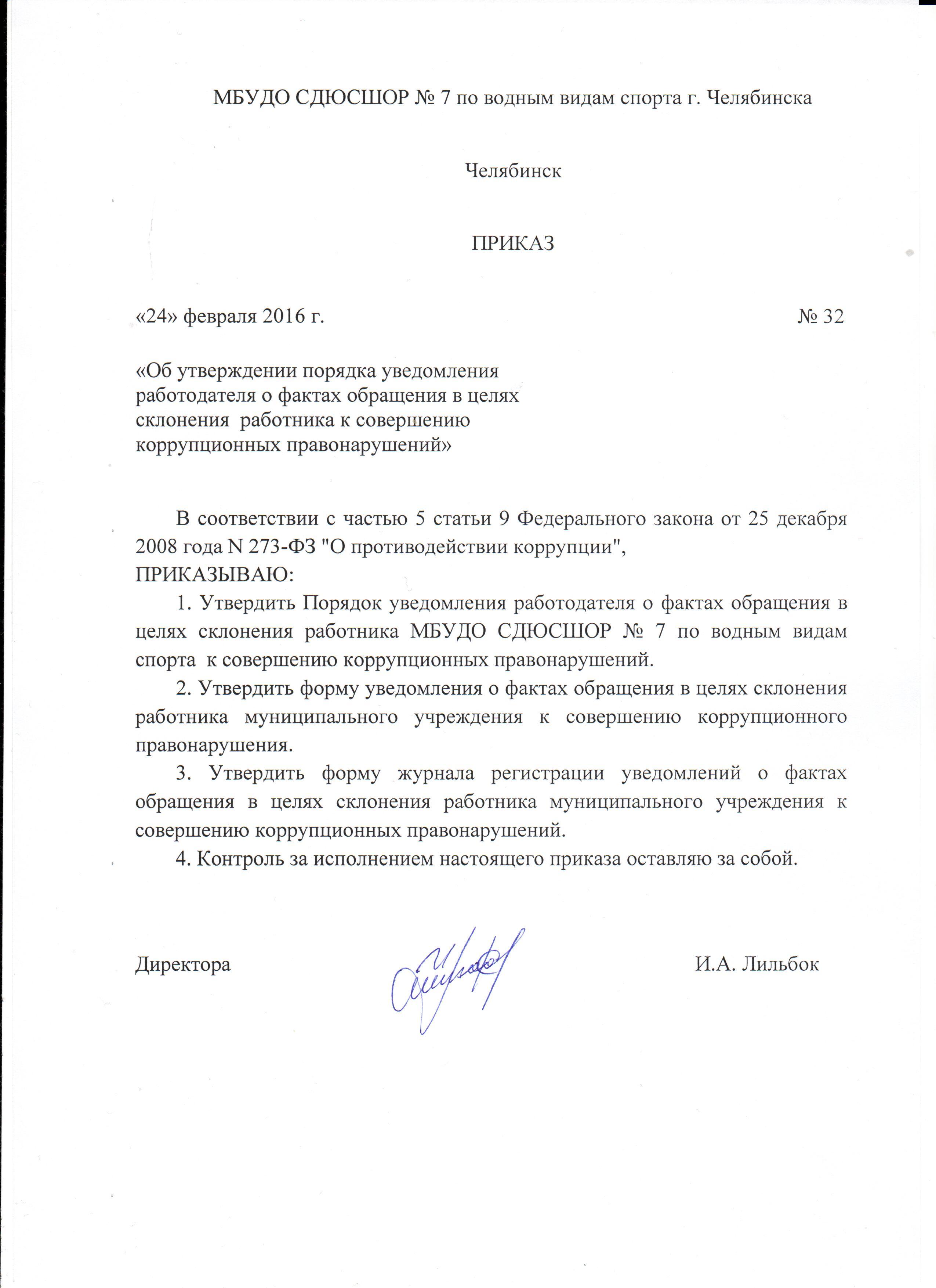 Приказ об утверждении положения о мерах по предотвращению и урегулированию конфликта интересов в МБУДО СДЮСШОР № 7 по водным видам спорта